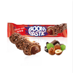 BOOMBASTIC贝巴思榛果夹心巧克力,巧克力涂层、威化层、巧克力酱从外到内层层包裹制作而成,且巧克力涂层内还包含有威化颗粒。牛奶巧克力的浓郁丝滑加上榛果威化的酥脆,吃起来酥脆可口。
