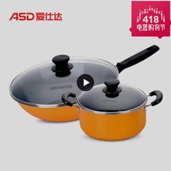 ASD爱仕达套装锅二件套TZ02CT,苏宁易购移动端售价99元,页面可领取8折优惠券,券后价79.2元。
