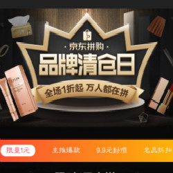 京东拼购,品牌清仓日,全场1折,爆款1元拼购。赶紧邀请好友开团吧。