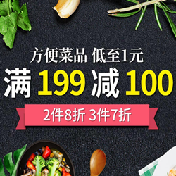 京东方便菜品专场促销活动,满199-100元!京东商城目前开启了方便菜品专场促销活动,场中商品低至1元,部分商品满199-100元,还有2件8折、3件7折专场。