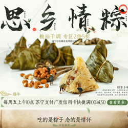苏宁粽子粮油专场,粮油低至2件5折!苏宁易购目前有粽子粮油专场活动,专区低至2件5折优惠,每天上午10点使用广发信用卡支付还可100-50元优惠