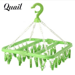 Quail 32夹折叠成人防风晾衣架塑料多夹子,挂拉伸缩功能加上独特的领口设计,让您“一架”多用。360°无死角旋转设计,可折叠设计,晒架折叠设计,方便收纳,实用。防风挂钩设计,不易吹落,晾晒更放心。可拆卸夹子,小夹子可自由拆卸可单独使用。