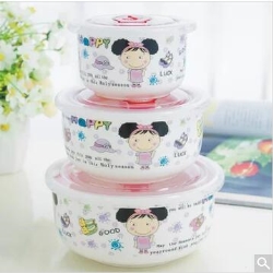 喜米陶瓷密封耐高温微波可适用保鲜碗三件套,国美限时价19.9元包邮。