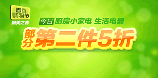 春季购物节,国美在线越买越便宜促销,厨房小家电/生活电器,第二件5折。活动商品包括:电水壶、电压力锅、电吹风、豆浆机、微波炉、电磁炉、挂烫机等。购买第二件享受折后后,价格确实给力!