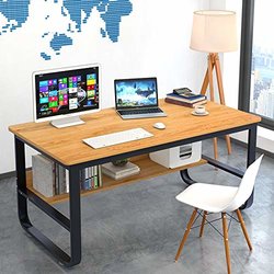 台式家用简约办公学习桌加粗黄梨木色120x60,亚马逊价159元。