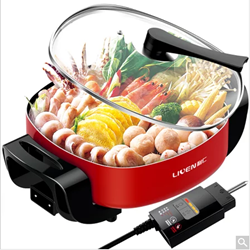 Liven利仁多功能家用电火锅DHG-40FH,额定功率大1800,制热快速,合金铝O型发热管,发热均匀,一体压铸机身,结实耐用,全身均可水洗,内壁不粘涂层,方便清洗。