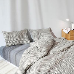 网易严选日式水洗棉格纹四件套,采用优质水洗棉面料,手感相较普通全面布料,手感更加柔软,而且更加吸湿透气,多次洗涤也不易变形,经过色织印染处理,色泽更鲜亮均匀,而且色牢度高,不易褪色。出纯色韵味典雅,经久耐看。使用活性染剂,不含甲醛等有害物质。