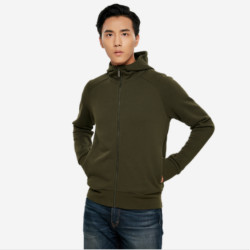 男式弹力连帽运动开衫,采用88%棉、12%聚酯纤维材质制成,柔软舒适不变形。版型宽松,做工精细,修饰身形。前身斜口袋装饰,下摆采用细腻的罗纹设计。连帽造型,兼具功能性与休闲感。