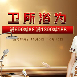 动时间:2018年10月8日-10月15日,参与产品涉及花洒、马桶、浴室柜、水槽、置物架、龙头等卫浴用品等!
