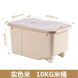 百露塑料装米箱米面收纳箱10-15kg,分隔设计,可储存两种不同的谷物,采用PP材质,光滑圆润,透明可视,通透感好,橡胶圈设计,底部带轮设计,方便移动,桶身带有刻度,准确把握储存量。