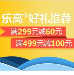 亚马逊乐高好礼推荐,满299减60/满499减100!今日亚马逊中国开启了乐高好礼推荐促销活动,页面领取优惠码,部分亚马逊自营乐高产品下单满299减60,下单满499减100。