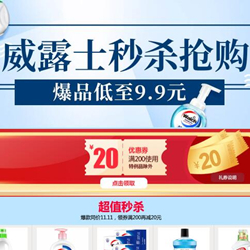 当当网威露士促销专场,每满100-50/叠加200-20!当当网威露士限时24小时抢购专场,多款人气爆品直降,低至9.9元,另有每满100-50元的满减活动,还可叠加场内200-20元优惠券(特例品除外)。
