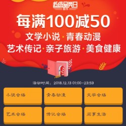 活动包含文学小说、艺术传记、青春动漫、美食健康、亲子旅游等,页面还有低至9.9元限时秒杀活动。活动限12.13日。
