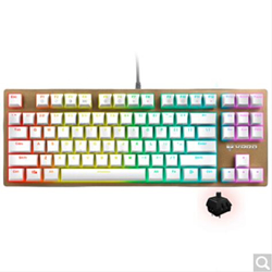 Rapoo雷柏背光游戏机械键盘V500RGB,键盘上面板采用了铝合金材质,底壳为透明PC材质,结合内部的灯光,在手离开键帽30秒之后,自动进入底壳的光谱循环模式。