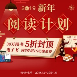 当当网2019年30万图书大促,图书5折封顶,电子书满3件返15元现金券,活动时间1.2-1.6日。