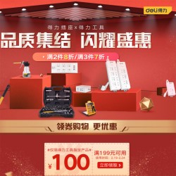 京东得力工具大促,2件8折3件7折,领199-100元优惠券。