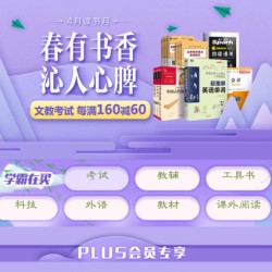 外语学习图书包含四六级、出国留学、双语读物等;热门考试包含 考研、注会注税、公务员、证券从业、工程类等图书;还有中小学教辅、课外阅读等每满160减60。