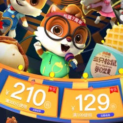 当当网三只松鼠7周年庆,满199减129,满300减210,活动仅限7.12日一天。