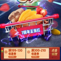 京东三只松鼠7周年狂欢,领满199-130,满300-210元优惠券,69元抱走一大箱,活动时间:7.15-16日。