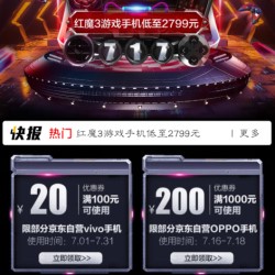 京东717游戏手机品类日,最高特惠500元,VIVO手机领100-20元优惠券,OPPO领1000-200元优惠券。