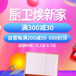 京东厨卫焕新家,自营每满200减50,600元封顶,活动时间:8.1-8.7日。