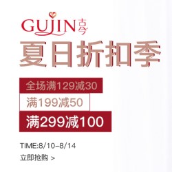 苏宁古今夏日折扣季,全场满129减30,满199减50,满299减100,活动截止到8.14日。