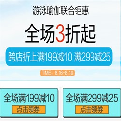 当当网游泳瑜伽联合钜惠,全场3折起,跨店折上满199减10/满299减25,活动截止到8.19日。