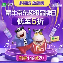 京东蒙牛超级品牌日,低至5折,领149-20元优惠券,活动仅限8.27一天。