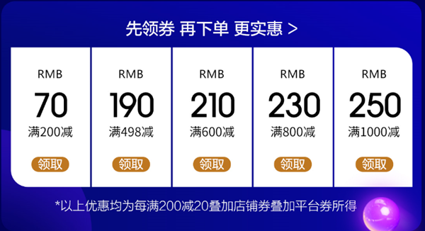 全店满498-190元,领199-50平台券可叠加每满200-20及店铺优惠券。