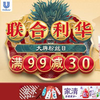苏宁联合利华大牌粉丝日,部分第二件0元,满99-30元!苏宁易购现有联合利华大牌粉丝日,部分单品第二件0元,全场最高享99-30元满减,活动页面还有99-88元,199-40元大额优惠券秒杀,适用产品具体参考优惠券适用范围。