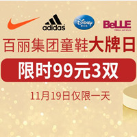 当当百丽集团童鞋大牌日,99元3双!当当百丽集团童鞋开启大牌日优惠活动,限时99元3双(仅限11月19日一天),还有专区两件3折、一件3.5折,更有爆品限时秒杀,还可领取30元无门款优惠券(限两件3折/一件3.5折专区使用)和100元无门款优惠券(限国际品牌专区使用)。