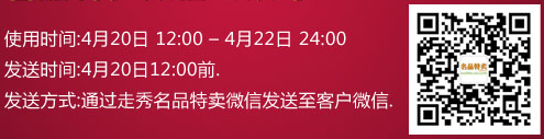 走秀网4月12 – 4月16日每天一场满减场,4月17日9:00 – 4月18日 9:00下单送200元 每满200再减20元。都是非常给力的活动。