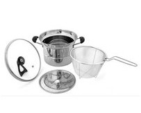 不锈钢料理蒸汤锅E-T001直径为22CM,具有蒸、煮、炸、炖等功能,煤气灶、电磁炉等均可使用。其采用的不锈钢材质制成,做工精致,外观比较的大方,综合性价比较高。