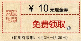 天猫超市正在发放一批天猫优惠券,天猫超市全场通用,满100减10元天猫超市优惠券点这里领取,有效期至4月31日。另外天猫华南站由于是新开,所以天猫网华南站发放88减10优惠券领取点这里。