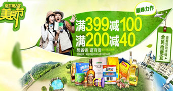京东商城第二节美食节正在进行时,从04月15日10点-19日18点止,全场购买食品饮料、保健产品可享受满200减40元、满399减100元的优惠。