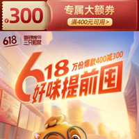 京东三只松鼠618提前囤,领券满400减300,活动限5.22日。