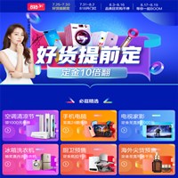 空调清凉季领1000元神券,手机电脑至高24起免息,电视家影定金至高抵1000元,抽奖赢内衣洗衣机,厨卫预售定金抵扣千元。时尚大牌定金至高翻25倍,运动鞋服定金10抵100。