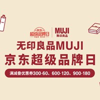 京东无印良品超级品牌日,满减叠券后满300减60,满600减120,满900减180。