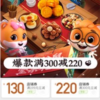 京东三只松鼠中秋大促,领券满199减130,满300减220