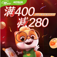 三只松鼠超级满减,领券满300减210,满400减280