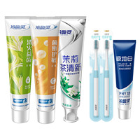 3支软管+2支牙刷+小样牙膏,舒缓固齿牙膏抗敏护龈6件套,深层洁净,健白牙齿,改善牙齿红肿,护敏新体验,清新口气。