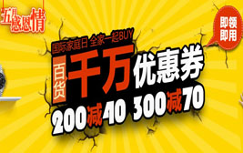 京东商城的家居日用百货千万优惠券免费领(京东商城铁牌及以上会员均可),2013年5月13日至17日18点,满200减40、满300减70东券,每个账户每天限领一张,即领即用至次日24时有效。