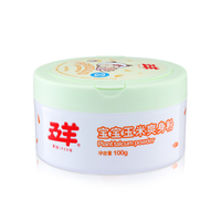 五羊 宝宝玉米爽身粉100g ,当当网原价49元,现全网低价9.9元,可支持货到付款。同品京东商城、1号商城旗舰店和天猫商城均价为38元,亚马逊中国32元,淘宝个人店铺低31元+。