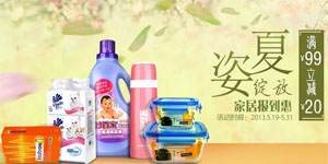 苏宁易购夏日家居清洁联合惠,至2013年5月31日,全场家居日用的衣物洗护、保鲜盒、纸品湿巾、雨伞雨具、清洁用具、成人用品等商品均满99元立减20元,不可累计。
