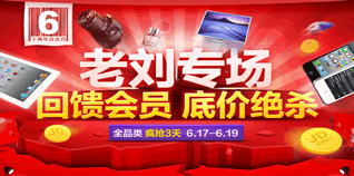 老刘专场,全品类疯抢3天,包括:老刘爆闪专区、品类专场促销、老刘会员专场、品牌促销区。
