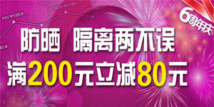为为网六周年庆,6月24日美妆隔离防晒专场,全场一次性消费满200元立减80元。活动商品包含了兰蔻、高丝、资生堂、欧珀莱、碧欧泉等品牌,现在还可叠加使用为为网积分换购的满减券(100减25、200减55)。