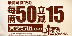 苏宁易购图书专场特卖会,7月1日-7月7日,全场60万种图书每满50元立减15元,高直减150元,相当于是7折的优惠。而同时进行的还有2000款图书买多少返多少的活动(每天高可返300元图书券),所返的图书通用券可用来购买站内任意实体图书。