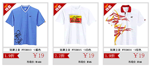 凡客的特价T恤又来了。李宁的牌子包括短袖、短裤、背心等,全部在19-29元之间,男女都有,还有不少运动比赛服,穿着去打球什么的特有专业范。