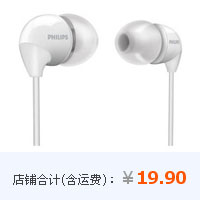 飞利浦入耳式重低音立体声音乐耳机SHE3590(8色可选),天猫商城报价39元包邮,下单再减19.1元,仅需19.9元购入。同款京东商城和易迅网同价49元,苏宁易购、国美在线同价69元,亚马逊低54元。