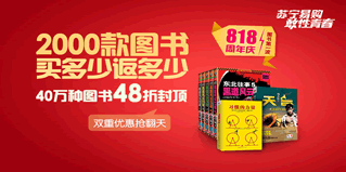 苏宁易购818周年庆,图书专场促销,买多少返多少。凡商品详情页面中,卖点描述含“该图书参加买多少返多少活动”,均参加活动。每天高可返300元券,返券可购买所以参加活动的商品(具体活动规则)。